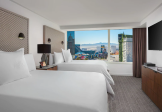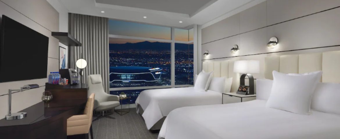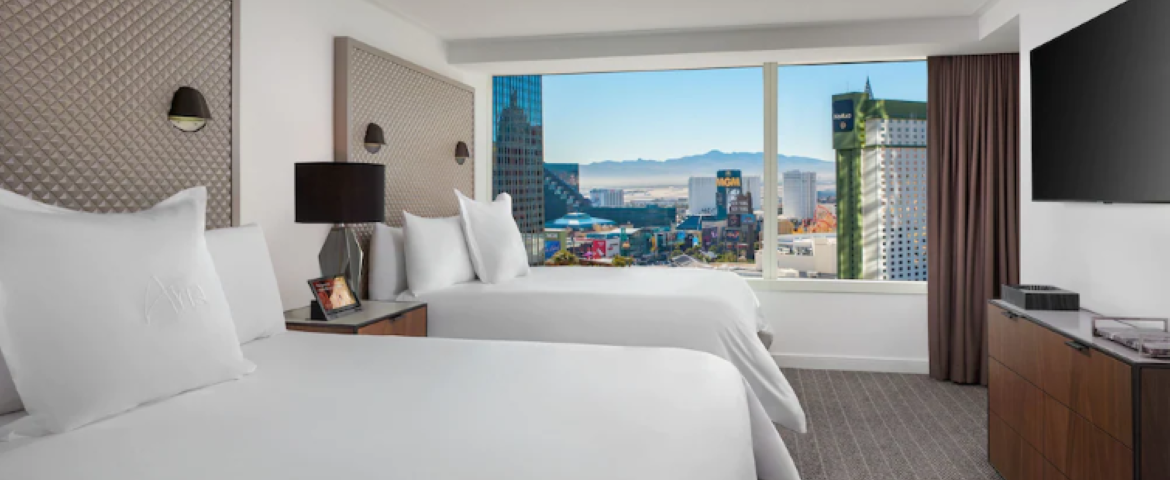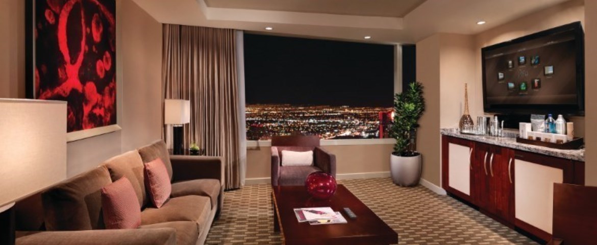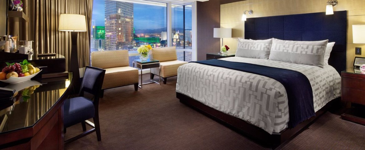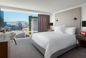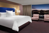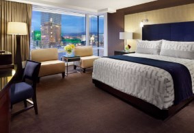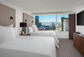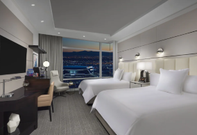 This room has a great view of the Las Vegas Strip. It has advanced technology with a big TV and a touch screen beside the bed to control the room. You can also find a small fridge with drinks and snacks, soft and cozy bathrobes, and a big bathtub to relax in. |
