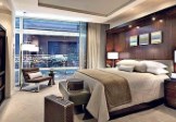 This high-tech room offers a stocked mini-bar, plush bath robes, a large soaking tub, a 42-inch flat-screen TV, and a 10-inch touchscreen bedside navigation system for the room settings. |